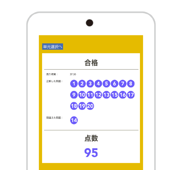 分野ごとに「確認テスト」にチャレンジしましょう。すべての「確認テスト」に合格するすると「進級テスト」にチャレンジできます。「進級テスト」は正解できなかった単元を中心に、AIが問題を選定して出題してくれる、あなただけのオリジナルテストです。進級テストに合格したら、次の級へ!